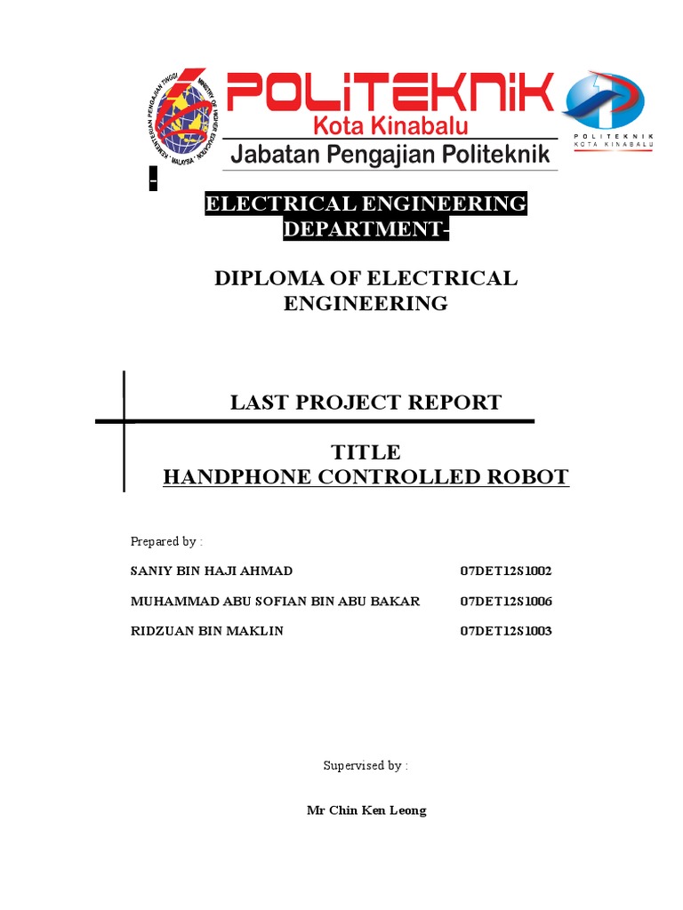 Contoh Laporan Projek Akhir Kejuruteraan Elektrik Politeknik / Projek tahun akhir 2019 (kolej vokasional lebuh cator) kos elektrik.