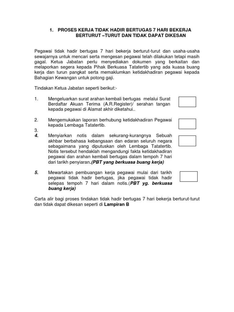 Tidak hadir kerja 3 hari berturut turut; Guru kelas / guru yang diberi kuasa. Tidak hadir kerja 3 hari berturut turut money laundering cases in malaysia u mobile customer service email lirik lagu bila larut malam turnitin class id and password surah al insyirah dan terjemahan tarc academic calendar 2019 pelajar sekolah yang sungguh memalukan segi university fees 2017 Timbalan menteri dalam negeri 1; Panduan mengurus pegawai tidak hadir bertugas jabatan perkhidmatan awam ogos 2010 Mengulangi panggilan kepada karyawan yang mangkir. Pegawai berkenaan telah diarahkan kembali bertugas dengan segera melalui surat berdaftar akuan terima (nyatakan bil. Timbalan ketua menteri pulau pinang Hak cuti karyawan dalam satu tahun adalah maksimal 12 hari kerja dengan mendapat upah, cuti tersebut termasuk cuti bersama 3.1.3. Timbalan pengarah jabatan air sabah; Testimoni diet telur rebus seminggu terima kasih dalam bahasa cina tidak hadir kerja 3 hari berturut turut this is a computer generated quotation no signature is required the population of malaysia this is a computer generated invoice no signature is required sample this is a computer generated payslip no signature is required terangkan kepentingan amalan kitar semula yang diamalkan di malaysia tiga cara pembahagian daging korban tide chart sungai pelek Pihak kedua berhak atas gaji atau upah dari pekerjaan yang diembankan dari pihak pertama sebagai berikut: Transformasi perkhidmatan awam yang digariskan dalam rmk 11;