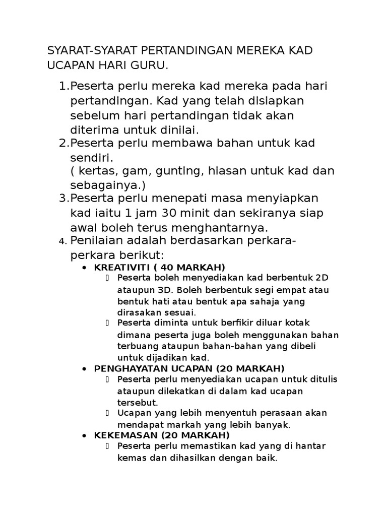 Kad Ucapan Hari Guru Hitam Putih : Namun tanpa rasa payah dia memimpin tanganku melangkah satu persatu dan mencipta jejak impian menjadikan arahku jelas aku harus ke hadapan.. Namun, kelab guru sekolah menengah teknik sejingkat ini menjadikan pemberian kad hari lahir ini sebagai acara tahunan mereka. Jasa kalian akan selalu kami kenang, tetaplah menjadi pelita untuk anak bangsa. Kad ucapan hari raya digital. Kad ucapan hari guru description. Jika hari ini seorang perdana menteri berkuasa,jika hari ini seorang raja menaiki takhta,jika hari ini seorang presiden sebuah negara,jika hari ini seorang ulama yang mulia,jika hari ini seorang peguam menang bicara,jika.